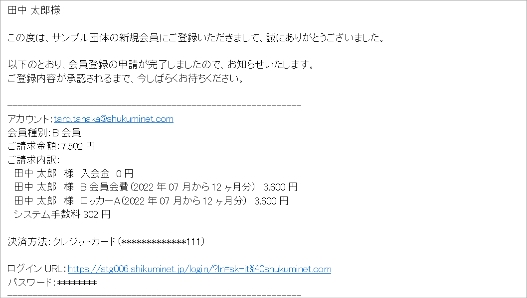 - 入会(新規登録)申請が完了すると、申請完了メールが送信されます。
